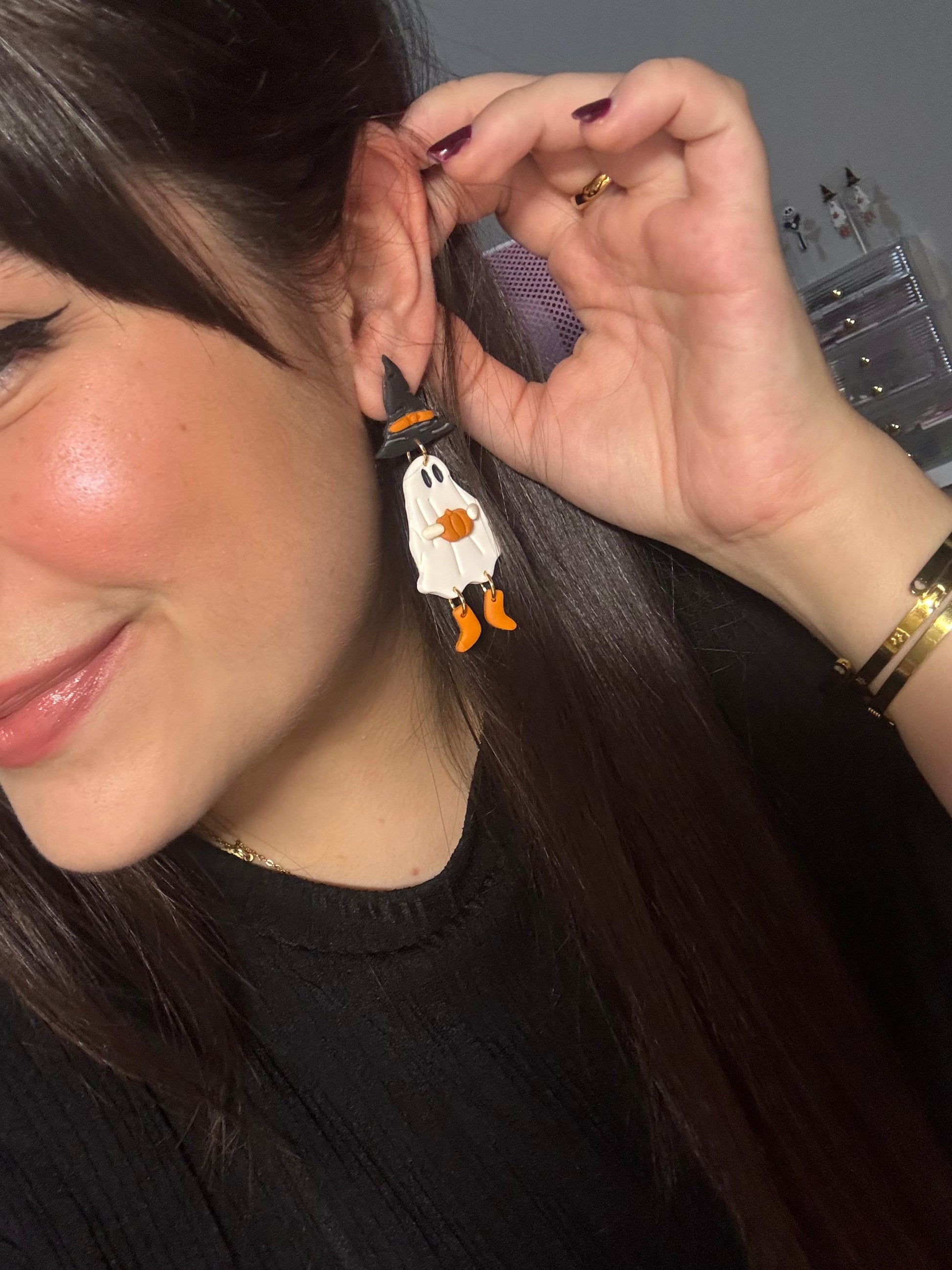 Pendientes hechos a mano con arcilla polimérica.
