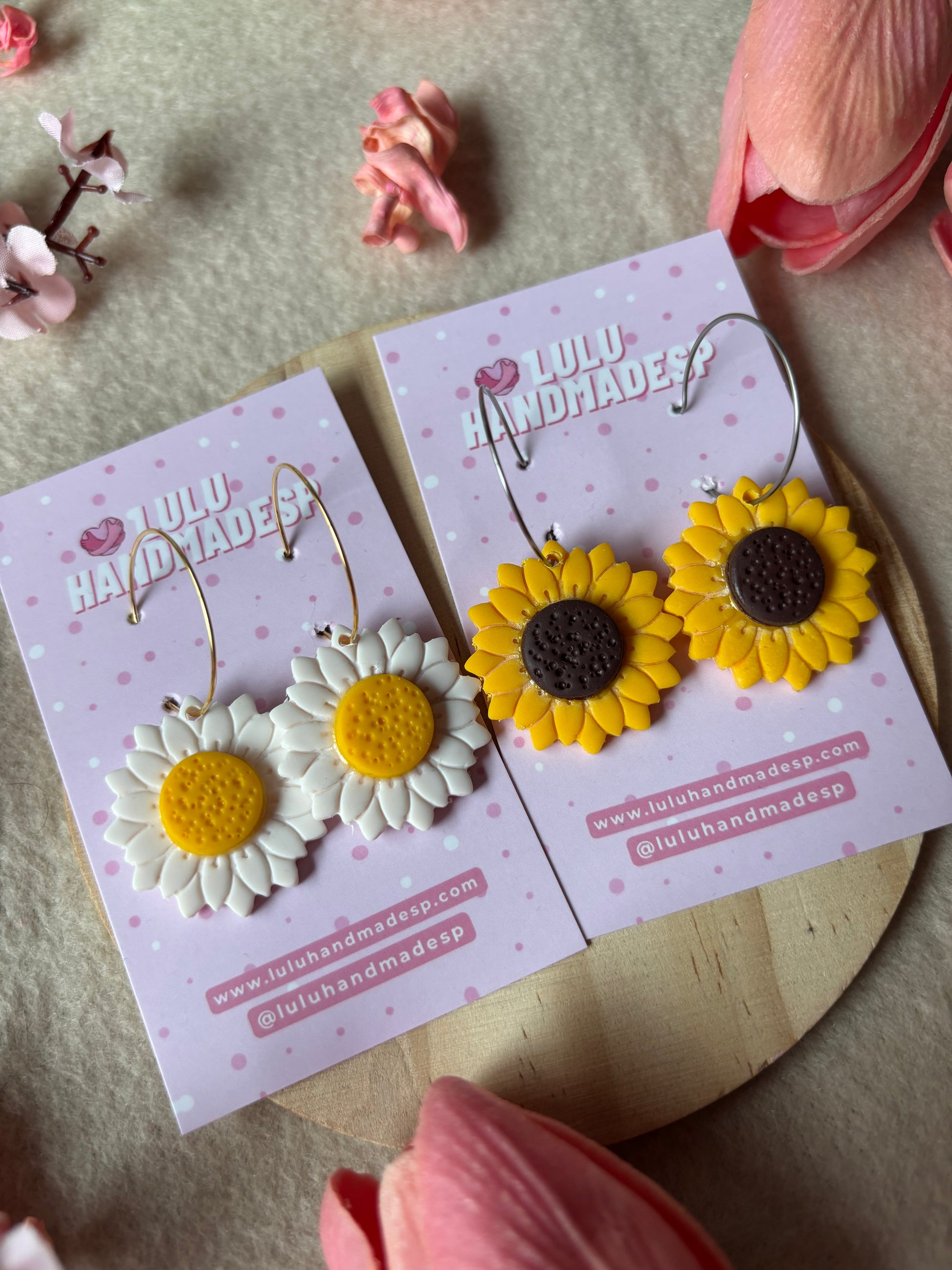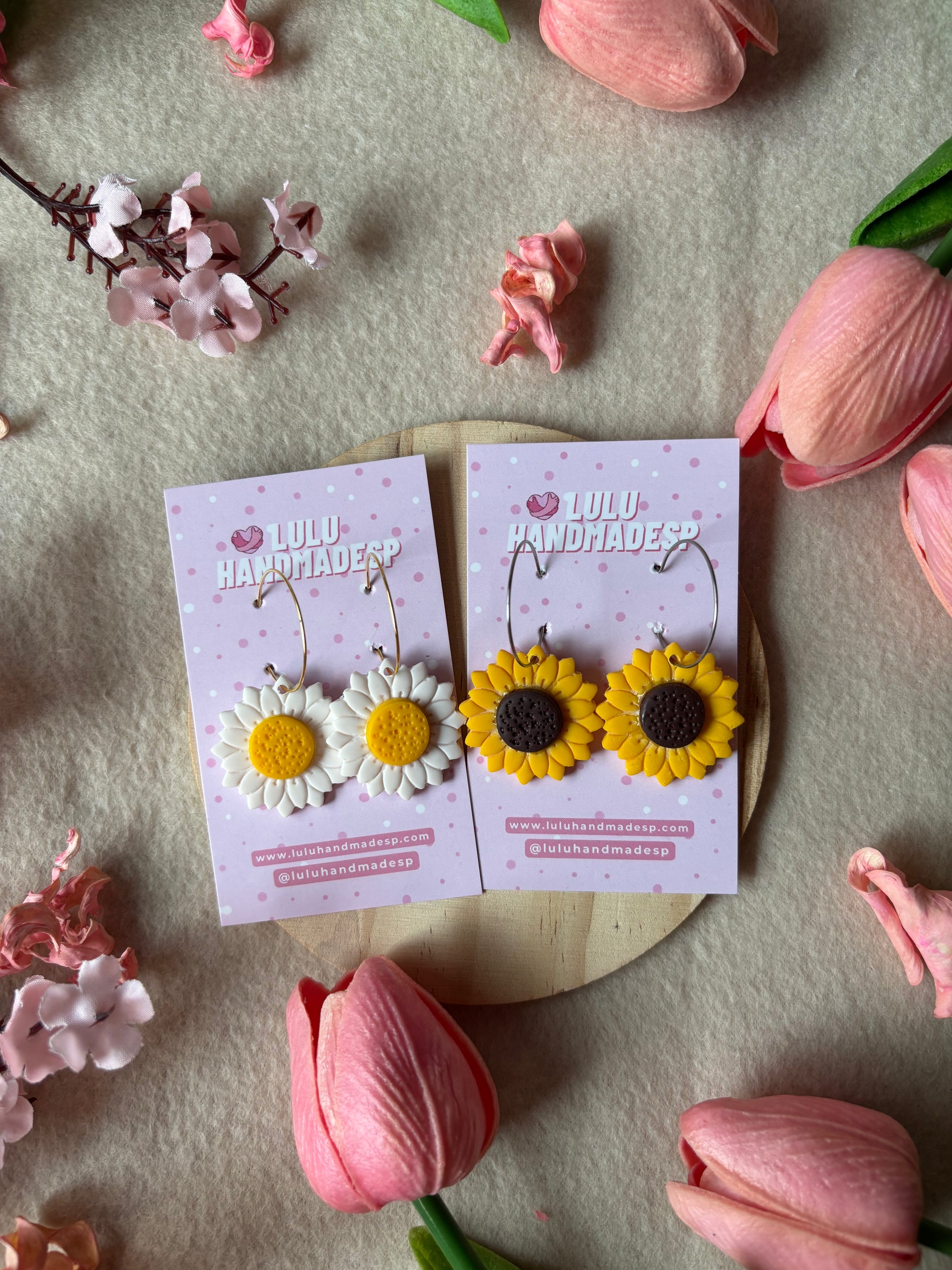 Pendientes hechos a mano con arcilla polimérica.