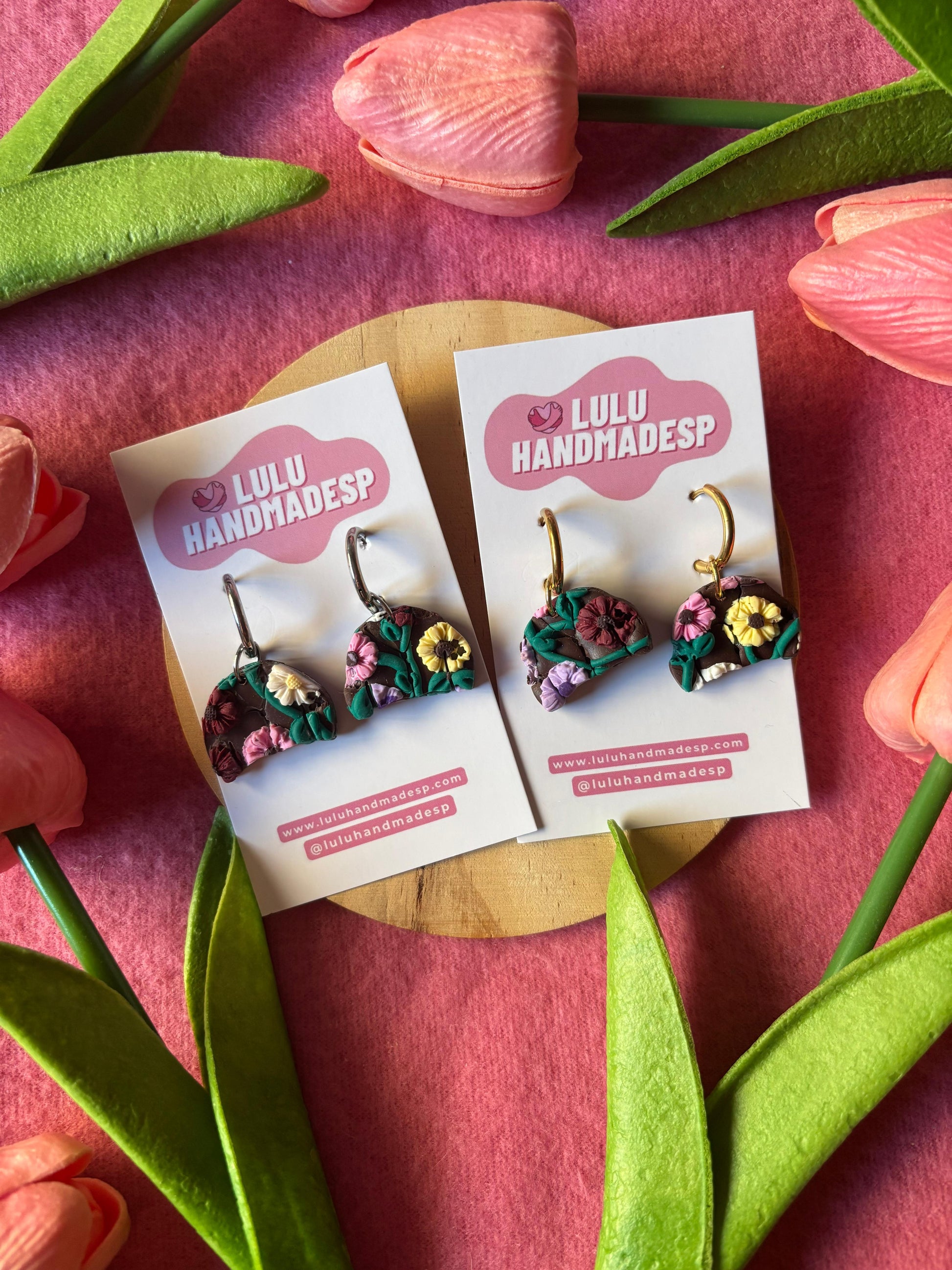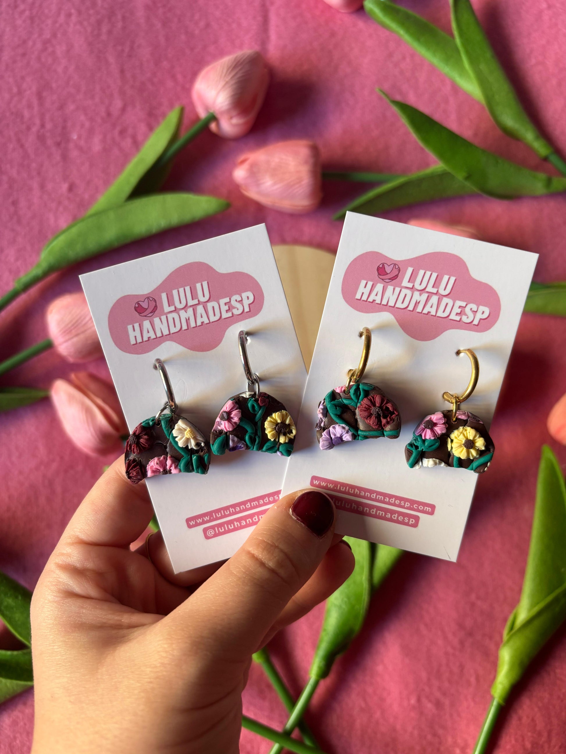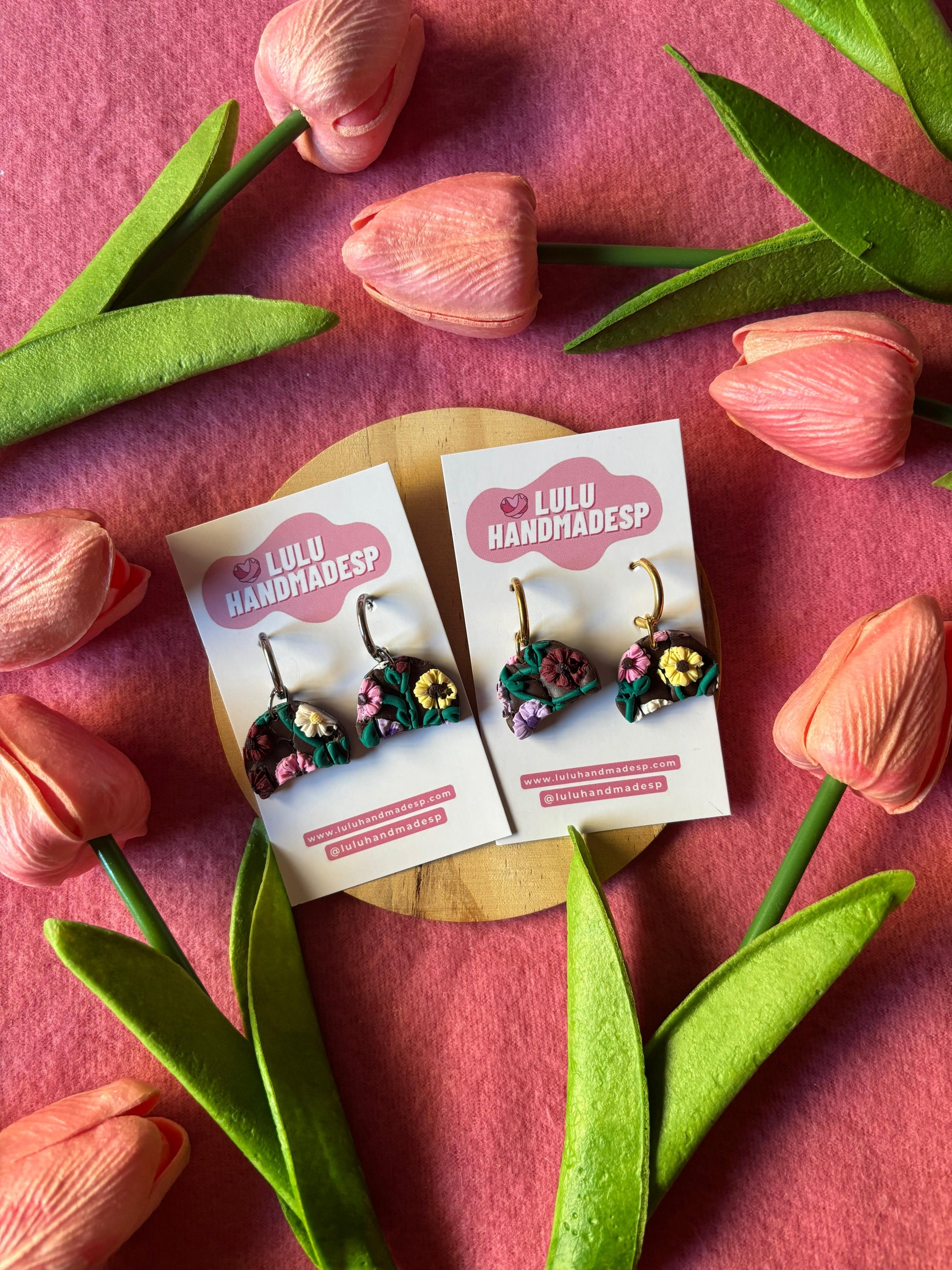 Estos pendientes están hechos a partir de una plancha de estampado creada a mano completamente, por lo que al cortar de la plancha los diferentes pendientes NO van a salir todos iguales. Las fotos del modelo son de referencia. Si tienes alguna preferencia específica como por ejemplo que tenga mas color rosa, apuntalo en notas del pedido en la medida de lo posible lo haremos realidad :)