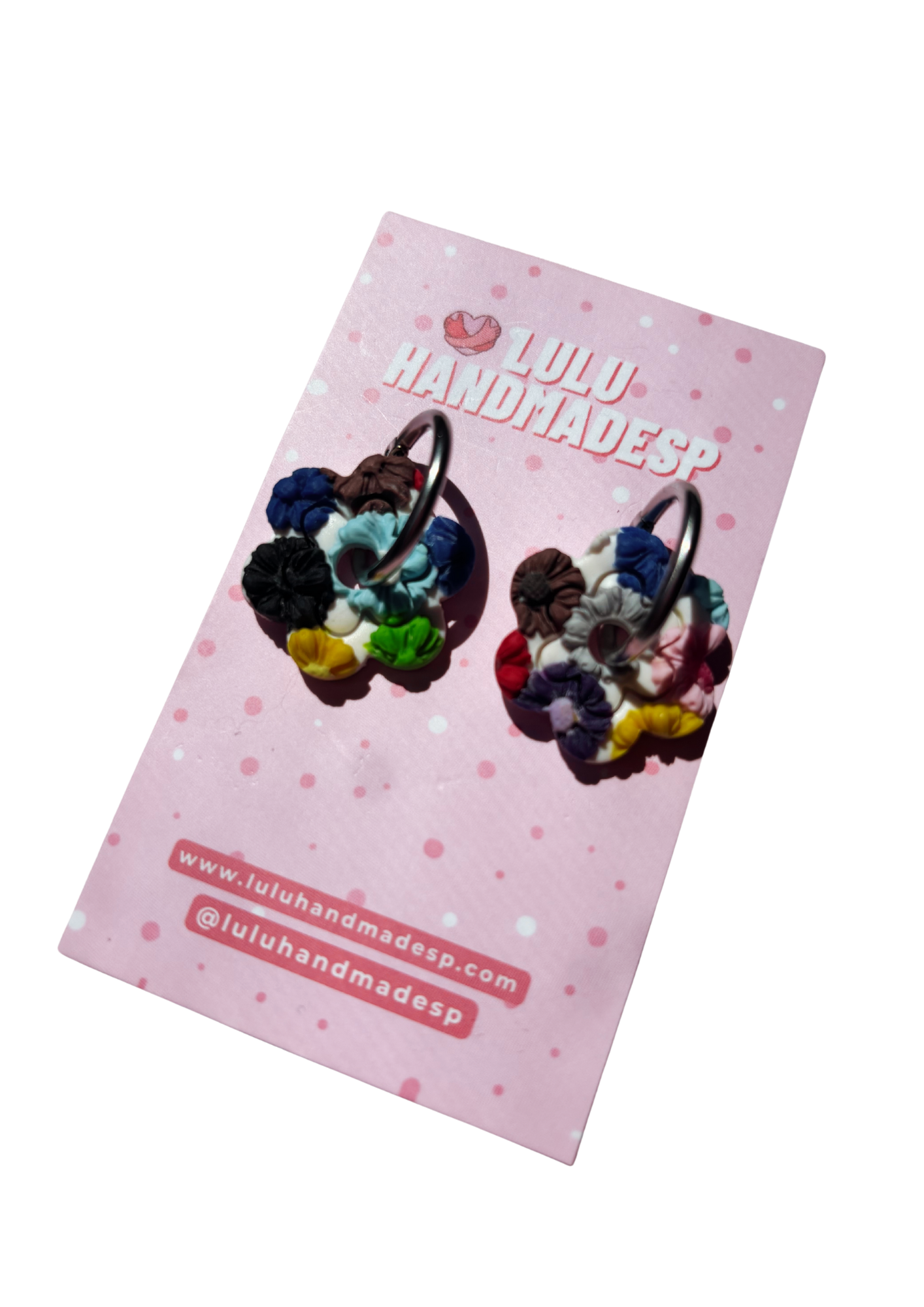 Estos pendientes están hechos a partir de una plancha de estampado creada a mano completamente, por lo que al cortar de la plancha los diferentes pendientes NO van a salir todos iguales. Las fotos del modelo son de referencia. Si tienes alguna preferencia específica como por ejemplo que tenga mas color rosa, apuntalo en notas del pedido en la medida de lo posible lo haremos realidad :)