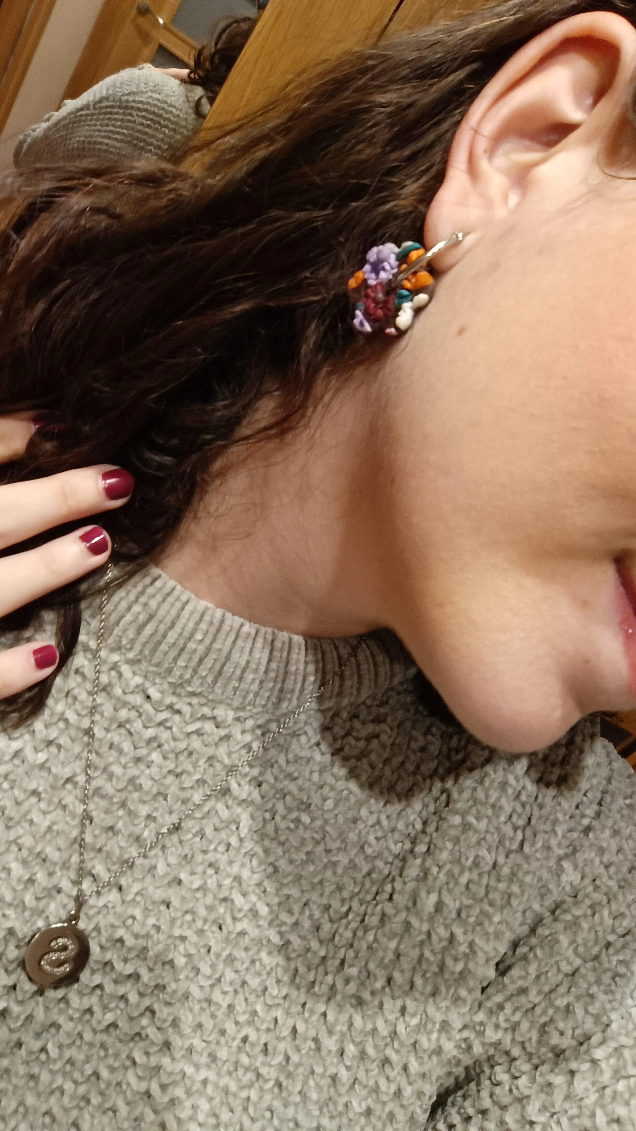 Estos pendientes están hechos a partir de una plancha de estampado creada a mano completamente, por lo que al cortar de la plancha los diferentes pendientes NO van a salir todos iguales. Las fotos del modelo son de referencia. Si tienes alguna preferencia específica como por ejemplo que tenga mas color rosa, apuntalo en notas del pedido en la medida de lo posible lo haremos realidad :)
