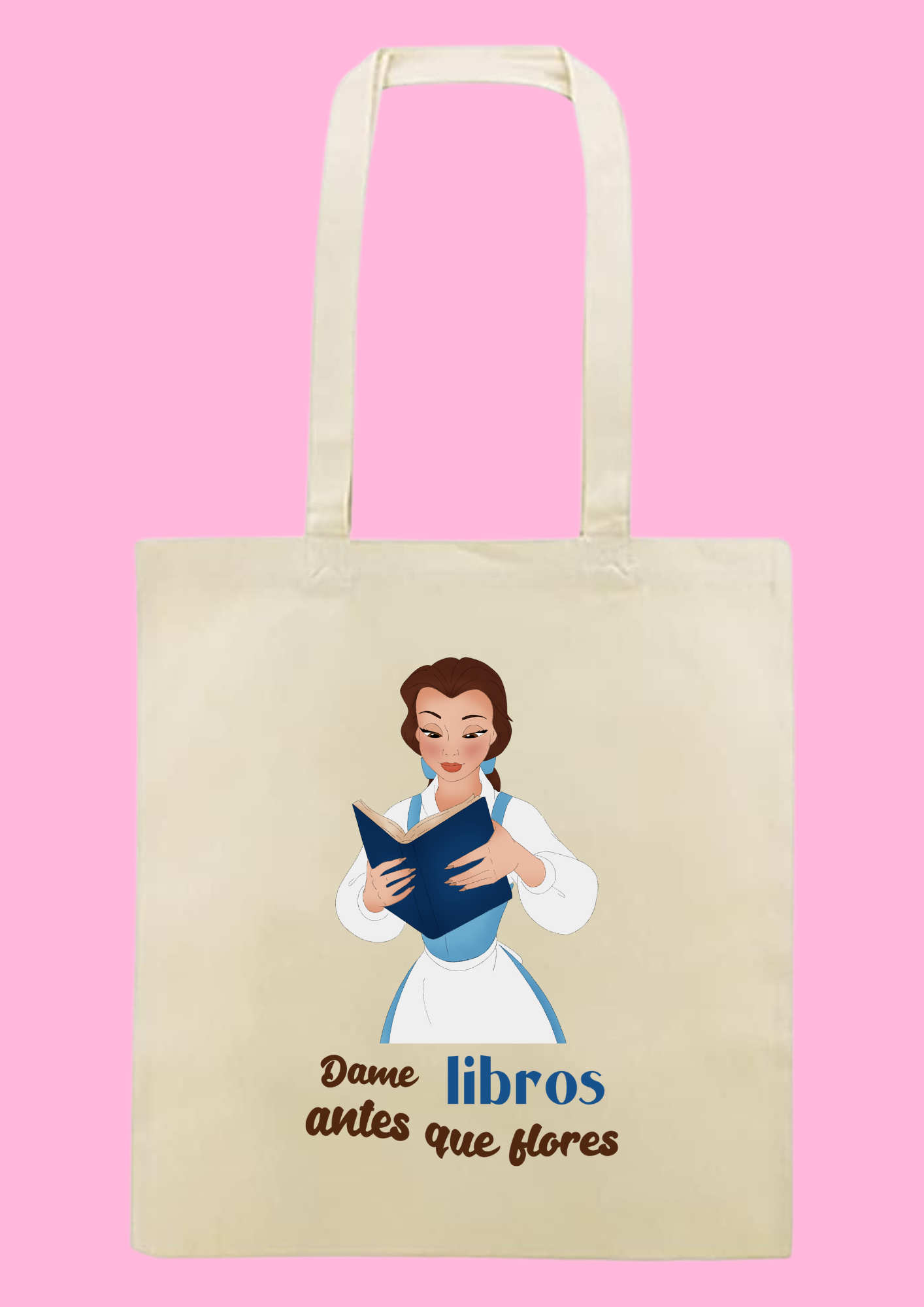 Tote bag "Dame libros antes que flores" Bella y Bestia